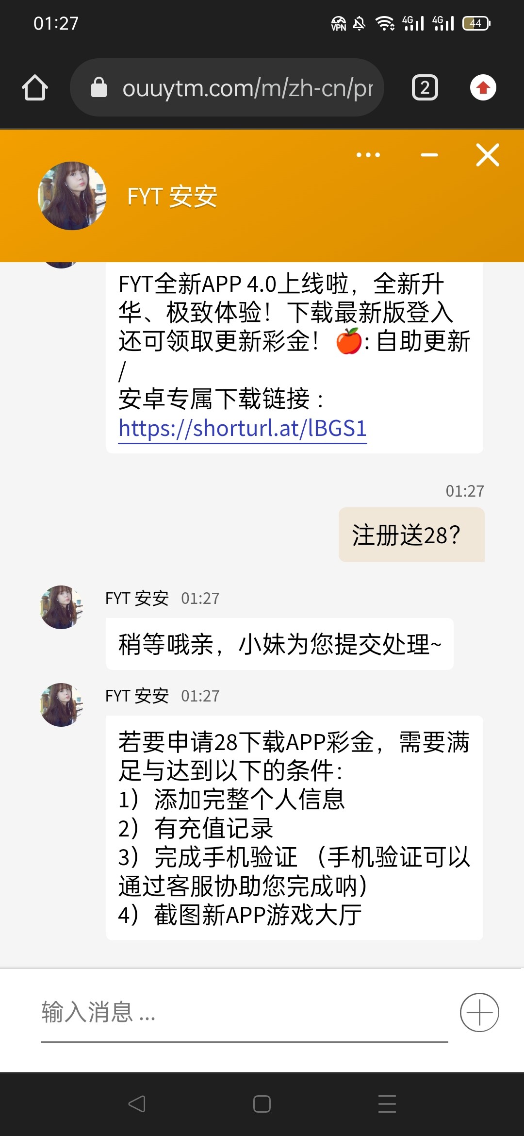 新用户下载app注册完善信息,找客服申请
