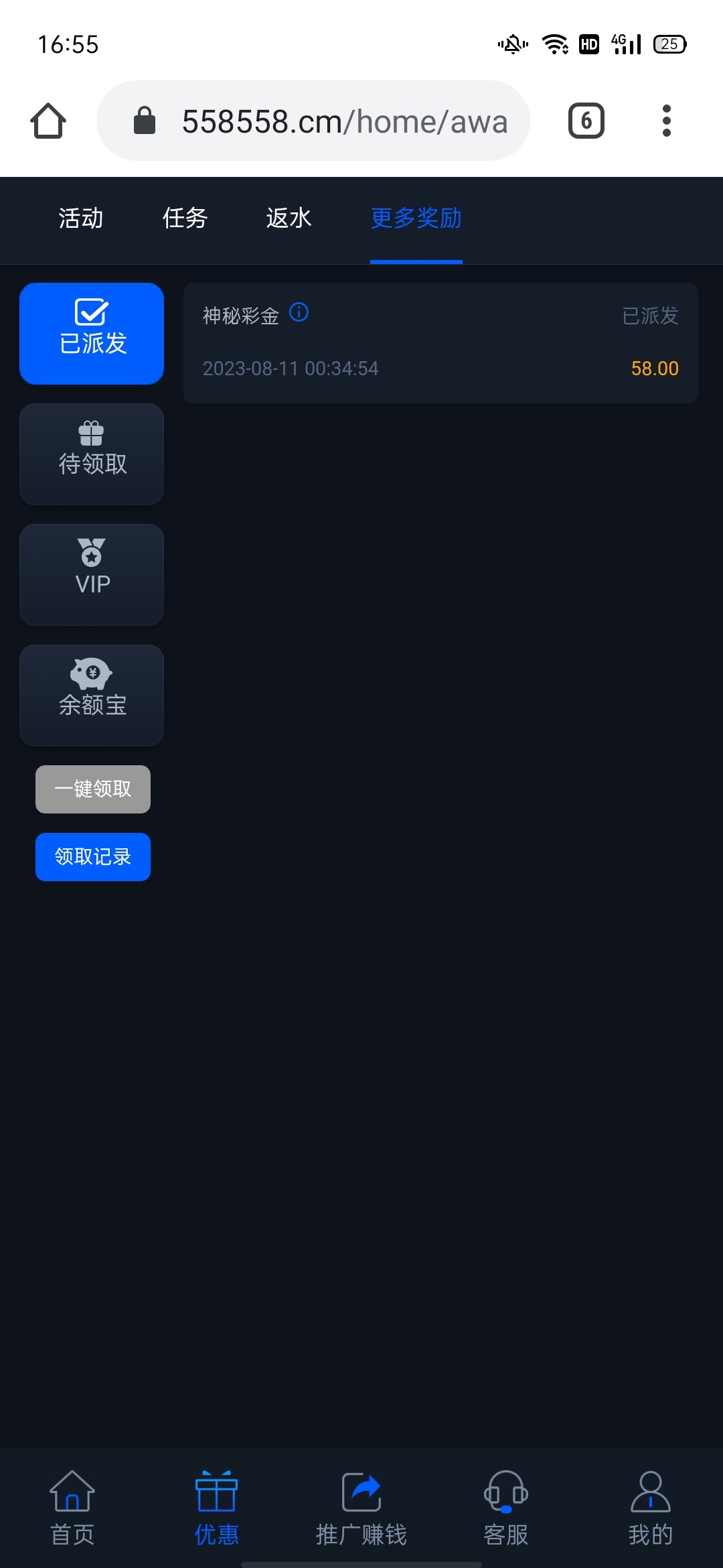 没有,一般神秘彩金应该充值过的才有