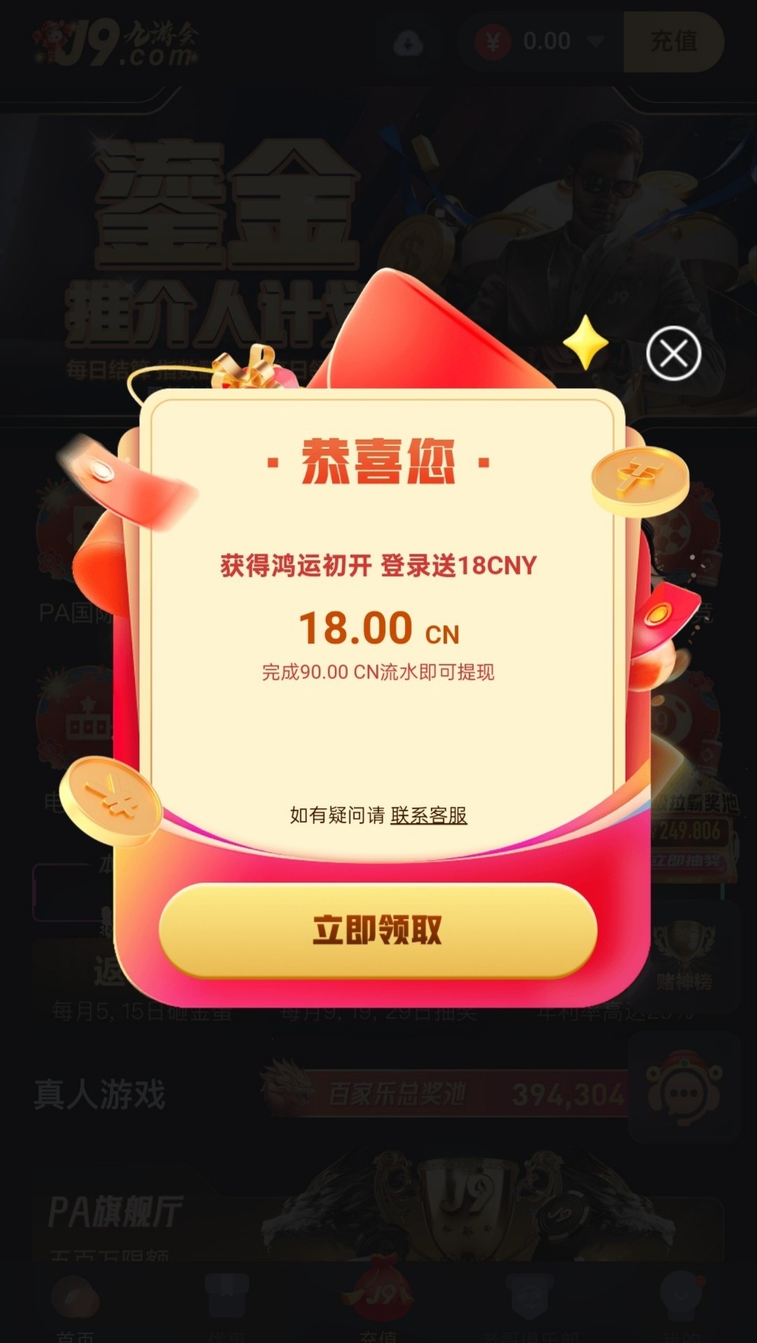 有账号的哥们登入上看有弹窗红包显示出来吗,没显示就是没有,5倍流水