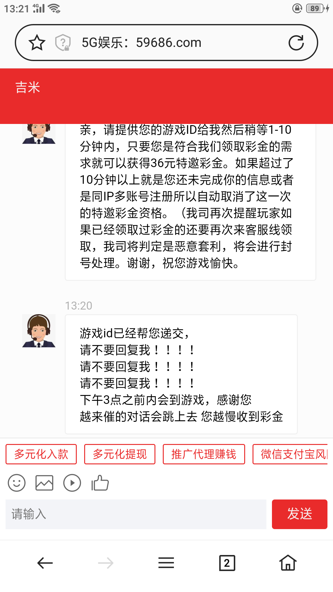 说充值没到账秒回复,他妈的哈哈哈
