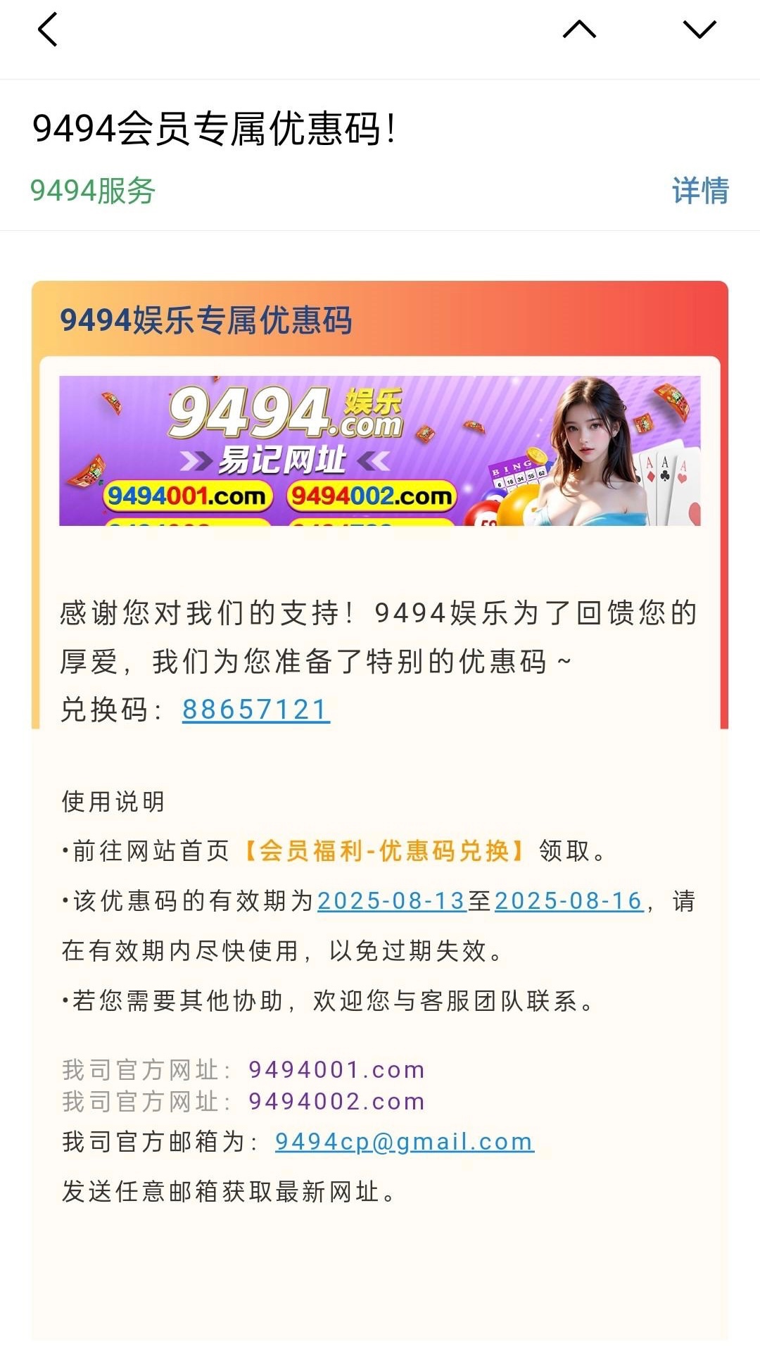 【9494娱乐】—✅—邮箱优惠码