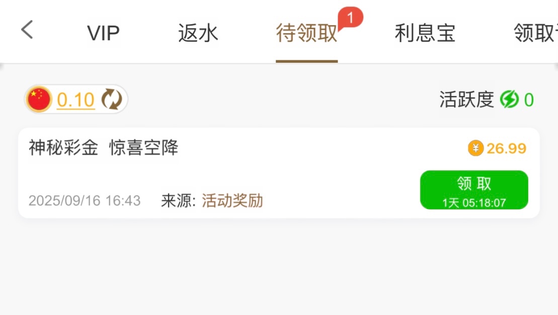 有注册过的兄弟可以登入上去看一下优惠待领取里有没有